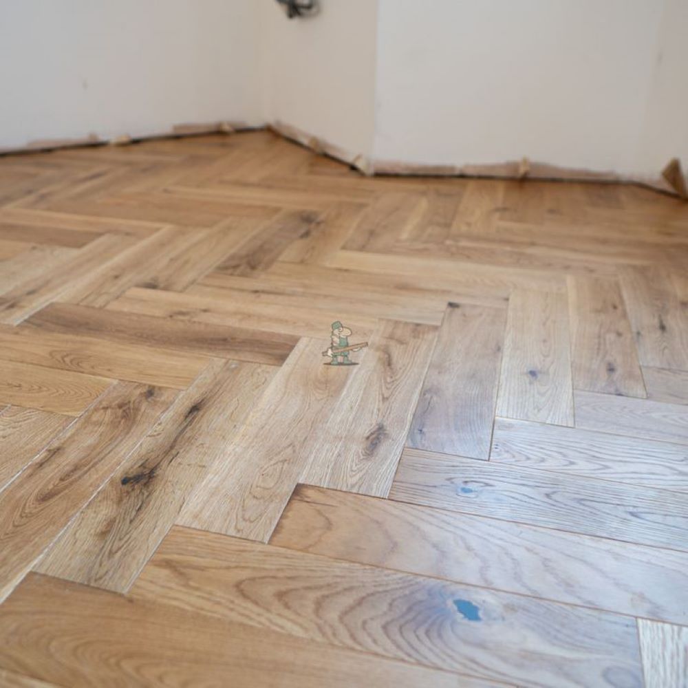 A bespoke wooden flooring option featuring custom engravings, patterns, or designs using teak and ebony wood combinations.